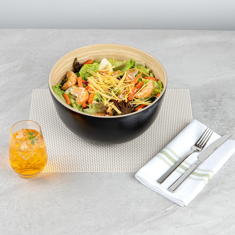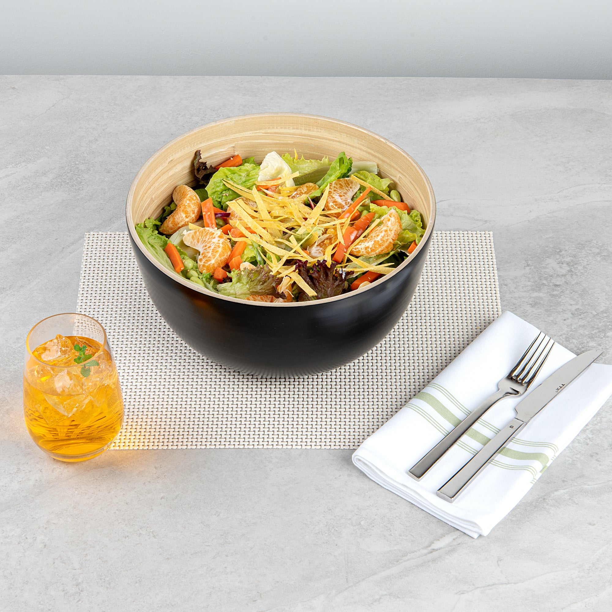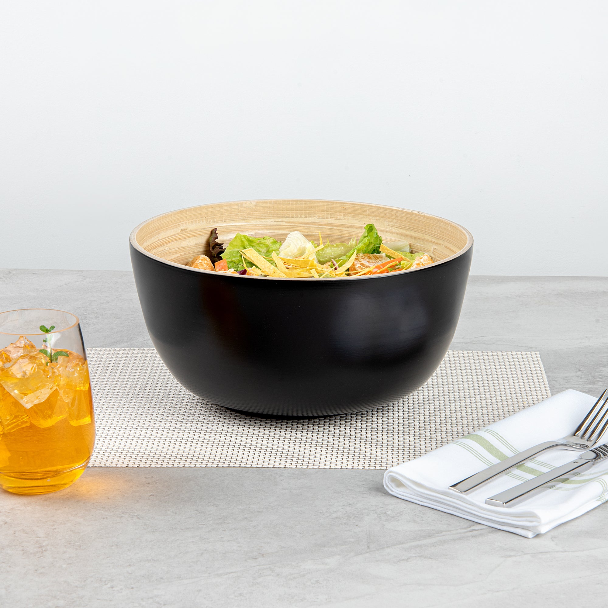30 OZ ROUND BLACK SPUN BAMBOO LARGE SALAD BOWL