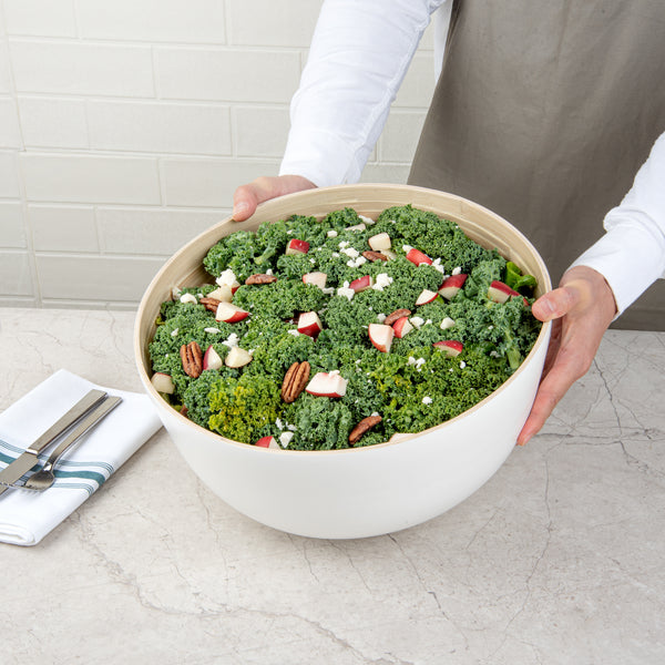 51 OZ ROUND WHITE SPUN BAMBOO EXTRA LARGE SALAD BOWL