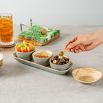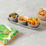 - Included bamboo tray lets you carry the bowls easily