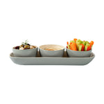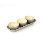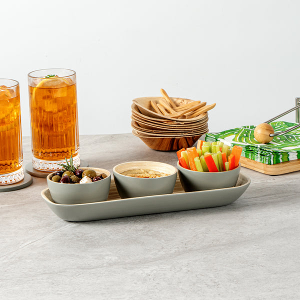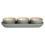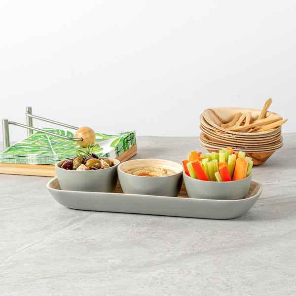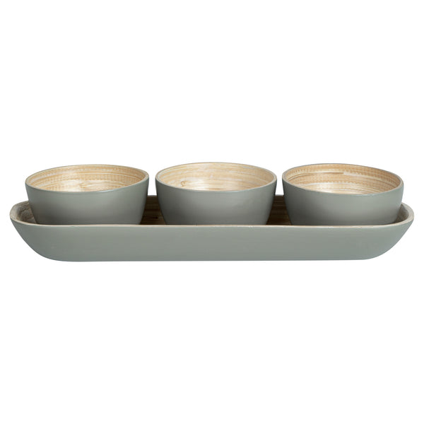 GRAY BAMBOO BOWL SET - 3 BOWLS, BAMBOO TRAY