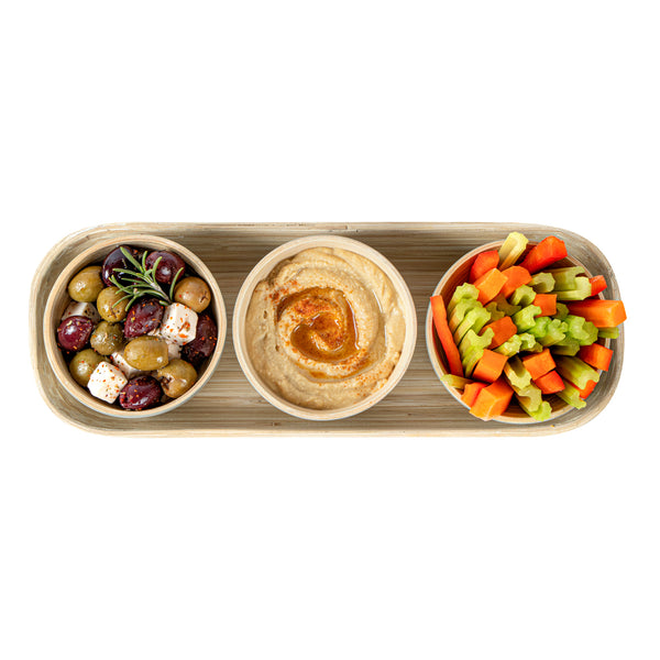 Elevate your dining experience with our Bambuddha Gray Bamboo Bowl Set. This bamboo bowl is designed with durability in mind, offering a long-lasting and sustainable alternative to traditional serving bowls. Made from bamboo, this bamboo bowl is suitable for hot and cold food. This biodegradable bamboo tableware includes a bamboo bowl and a tray, skillfully constructed from robust bamboo, providing lasting value for a cafe, bakery, or catering service. Impress your guests with the stylish color and print of this bamboo fruit bowl, which also makes for a great snack bowl during casual gatherings. Including a handy bamboo tray, this bowl set with a holder makes it easy to transport and serve your culinary creation. Greaseproof and freezable, this commercially compostable bowl is perfect for a wide range of dishes and can be stored in the freezer for later use. With a sizeable dimension of 9 inches in diameter by 4.5 inches in height, this bowl comes with a tray measuring 30 inches in length by 11 inches in width by 3.5 inches in height. Sold in a 1 count box. This item will only degrade outside of the traditional solid waste stream.
