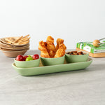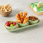 Enhance your tablescape with eco-friendly sophistication. The Bambuddha Bamboo Serving Set combines sustainability with style, making it an ideal bamboo serving set for conscientious dining establishments. Made from sustainable bamboo, this 11.75-inch by 4.25-inch by 1.75-inch set includes a 3-piece bowl set that serves a variety of dishes, providing an organized presentation for appetizers or condiments. Its natural green finish adds a touch of freshness, enhancing the aesthetic of any table setting. The included bamboo tray with bowls offers easy transport, ensuring efficient service during busy events. With a sturdy design that withstands rigorous use without warping, this bamboo appetizer set is suitable for both hot and cold foods, making it a versatile addition to your collection. Choose this set to elevate your presentation while supporting eco-friendly practices. Each order includes 10 Bambuddha Bamboo Serving Sets.