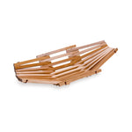 Add a rustic charm to the way you serve bread with our Bambuddha Natural Bamboo Bread Basket. With a unique slatted design, this bread serving basket adds an elegant twist that instantly draws customers' eyes to your fresh toast, biscuits, demi baguettes, and other foods. This bread tray is shaped like a boat to securely contain your treats and prevent messy accidents when serving customers. The bamboo finish of this bread basket creates a natural backdrop that beautifully showcases your baked breads and pastries. Constructed from premium bamboo, this bread serving tray is chip-resistant and shatterproof to preserve its stunning appearance for frequent use at your restaurant, bistro, buffet, and other foodservice establishments. Measuring 6.5 inches in length and 3 inches in width, this bamboo bread basket is ideal for picnics and celebrations. Shipped in a 1 count box.