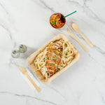 NATURAL BAMBOO DISPOSABLE CUTLERY SET - WHITE NAPKIN, KRAFT POUCH