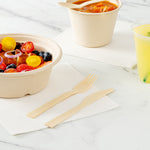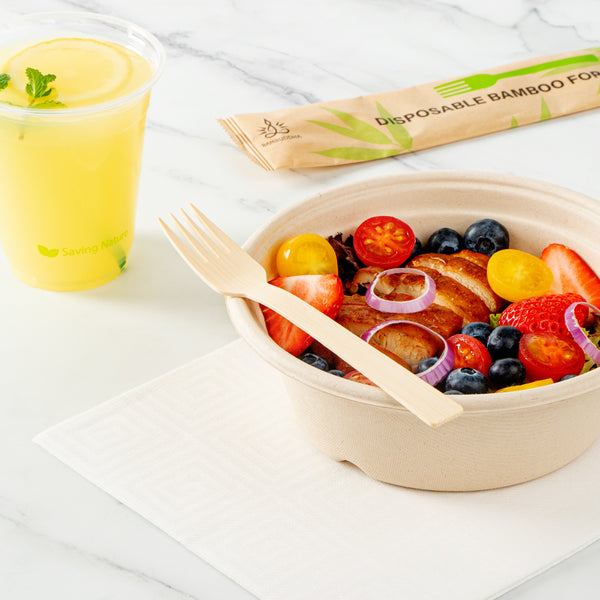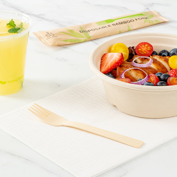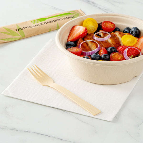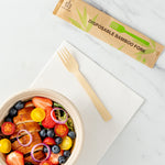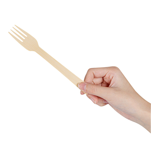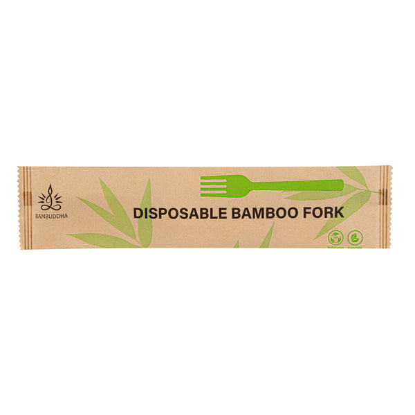 Provide guests with a unique look with your food presentations using our Bambuddha Natural Bamboo Disposable Forks. Made from sustainable bamboo, these disposable forks offer an eco-friendly alternative to traditional flatware. Great for the environment, these forks are commercially compostable and biodegradable for a reliable way not to pollute landfills. These bamboo forks are highly durable to endure hot and cold foods so they won't break. With a smooth finish, these biodegradable forks provide a splinter-free surface for safe handling. Individually packaged in a kraft paper pouch, these bamboo forks make transport simple and offer a hygienic way to enjoy meals. Featuring a wood grain natural finish, these bamboo forks are suited for any type of occasion. These commercially compostable forks measure 7 inches long. Sold in a 100 count box. This item will only degrade outside of the traditional solid waste stream.