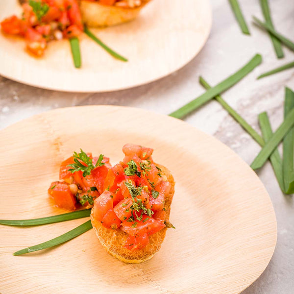 Serve your exquisite culinary creations with a touch of class and an eco-conscious mindset using our Bambuddha Round Natural Bamboo Medium Veneer Plates. Constructed with sustainable bamboo material, these biodegradable dinner plates convey your dedication to showcasing your dishes beautifully. The resilient bamboo composition of these bamboo plates ensures they can support heavier food items without bending, providing your guests with a neat dining experience. The medium-sized, lightweight dinner plates create the perfect blend of sophistication and convenience, enabling streamlined storage and handling. Measuring 7 inches in diameter, these commercially compostable medium round plates offer sufficient space for your delightful meals and feature an attractive design compatible with various upscale event themes. Shipped in a 100 count box.