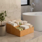 SQUARE NATURAL BAMBOO CONDIMENT ORGANIZER - 9 COMPARTMENTS