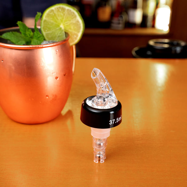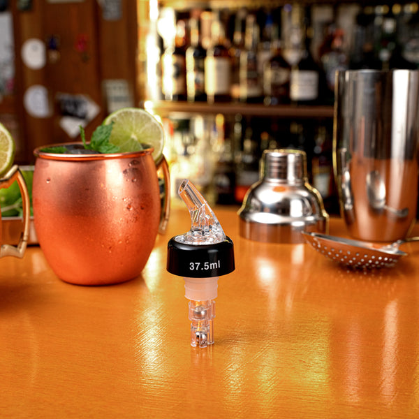 Serve shots in a mess-free manner using our Bar Lux 1.3-ounce Clear Plastic Measured Liquor Pourers. Crafted with a clear spout and tight-fitting black collar, these liquor pour spouts are ideal for preventing spills while serving customers at your bar or hotel. These alcohol pourers include ball bearings to expertly pour your desired liquors. The clear tail of these shot pourers provides a full view of alcohol while pouring. These liquor pour spouts are made with high-quality plastic that is durable and crack-resistant to withstand frequent use at your foodservice establishment. These alcohol pourers accurately measure and serve up to 1.3 ounces of your preferred liquor or drink mix. These shot pourers measure 1.38 inches in diameter by 3.74 inches in height. Sold in a 50 count box.