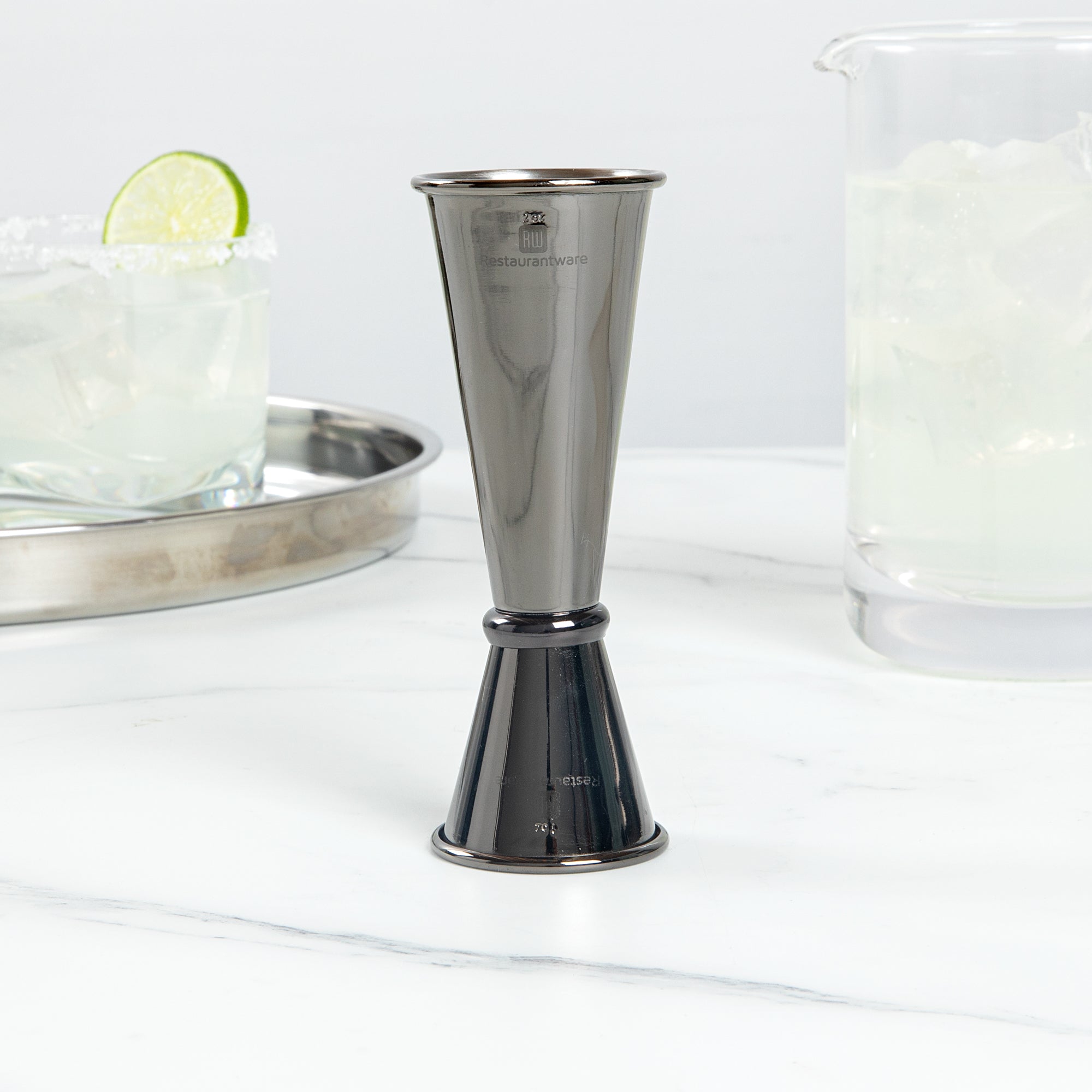 - Double-sided design conveniently measures 1 or 2 ounces of liquid