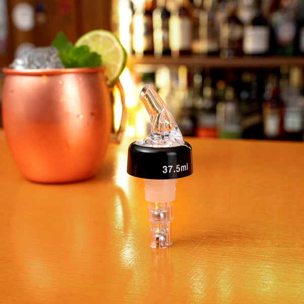 Serve shots in a mess-free manner using our Bar Lux 1-ounce Clear Plastic Measured Liquor Pourers. Crafted with a clear spout and tight-fitting black collar, these liquor pour spouts are ideal for preventing spills while serving customers at your bar or hotel. These alcohol pourers include ball bearings to expertly pour your desired liquors. The clear tail of these shot pourers provides a unique view of alcohol while pouring. These liquor pour spouts are made with high-quality plastic that is durable and crack-resistant to withstand frequent use at your foodservice establishment. These alcohol pourers accurately measure and serve up to 1 ounce of your preferred liquor or drink mix. These shot pourers measure 1.38 inches in diameter by 3.74 inches in height. Sold in a 10 count box.