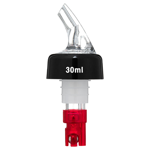 Easily pour shots of whiskey, rum, or tequila using our Bar Lux 1-ounce Red Plastic Measured Liquor Pourers. These whiskey pourers are designed with a tight-fitting black collar to prevent messes while serving. The clear spout of these measured liquor pourers provides expert visibility when pouring drinks. Perfect for serving shots or up to 1 ounce of your desired liquor, these whiskey pourers are designed to accurately and easily measure portions of alcohol as you serve customers. These measured liquor pourers include ball bearings on the inside to help you pour beverages in a spill-free manner and reduce waste. Made with a bright red tail, these shot measure pourers are ideal for quickly identifying different liquors or spout sizes at your restaurant, bar, or hotel. Made with premium crack-resistant plastic, these shot measure pourers can withstand daily use at your bar while maintaining its appearance. These whiskey pourers measure 1.38 inches in diameter by 3.74 inches in height. Shipped in a 10 count box.