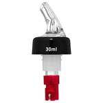 1 OZ RED PLASTIC MEASURED LIQUOR POURER - WITH COLLAR, CLEAR SPOUT