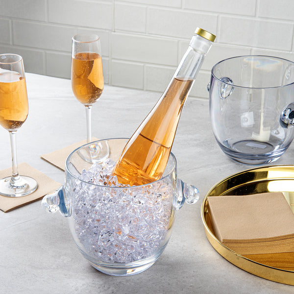 Add a touch of elegance to your bar service with our Bar Lux 2.1-quart Clear Plastic Ice / Champagne Bucket. Crafted from supreme polycarbonate plastic, this clear plastic ice bucket offers a crystal-like clarity to showcase your best bubbly and chilled beverages. The smooth rim of this plastic champagne bucket ensures a comfortable grip, while the sturdy base provides stability to prevent spills and tip-overs. This ice bucket is shatterproof, adding durability and safety to your service. Suitable for all kinds of beverages, this versatile plastic ice pail is a practical choice for any event or venue. Cleaning is a breeze as this ice bucket is dishwashable, saving you time and effort. With a capacity of 2.1 quarts, this bucket can easily hold ample amounts of ice or champagne. Measuring 8.75 inches in length by 6 inches in width by 6.25 inches in height, this chill ice bucket is just the right size for your bar or tabletop. Sold in a single count box.