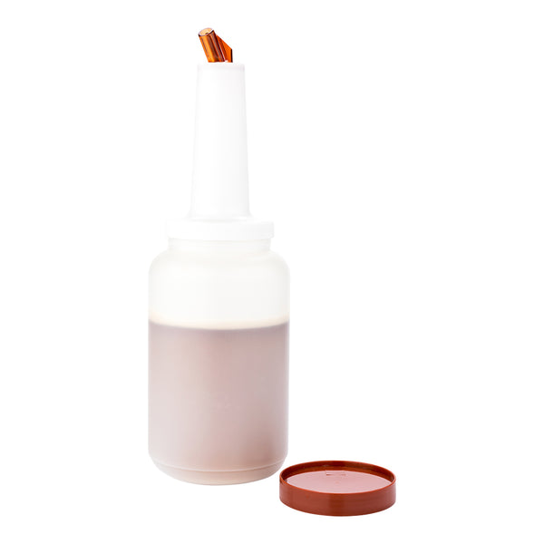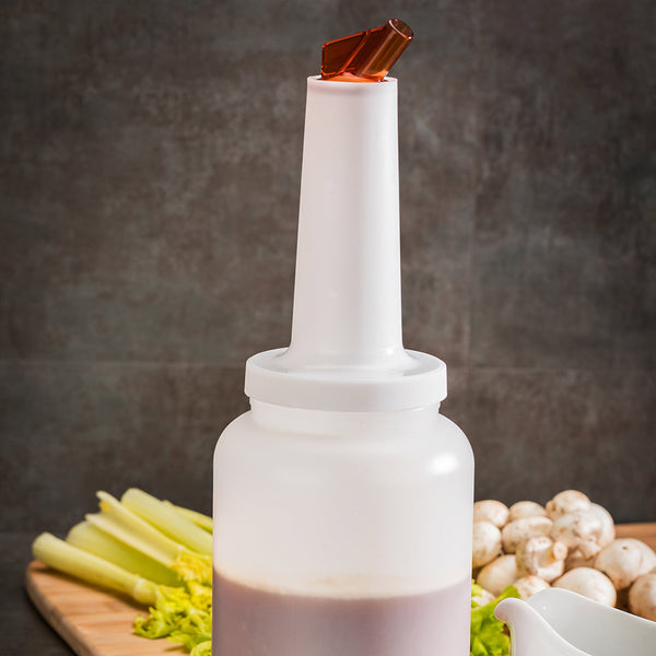 Instantly enhance your food prep and bar storage with this Bar Lux Quick Pour Storage Container Bottle. Equipped with an interchangeable dispensing lid and storage lid, this juice storage bottle is the ideal solution for storing and pouring prepared juices, cocktail mixes, dressings, sauces, and more! The dispensing lid provides a secure grip for smooth and precise pouring of your prepared ingredients, while the twist-on storage lid forms a leak-resistant and airtight seal to maintain maximum freshness. Featuring a brown color-coded pour spout and storage lid, this quick pour storage container creates an organized and easily identifiable alternative to plastic salad dressing bottles and juice bottles. Each of these unique juice pour bottles has a total capacity of 2.5 quarts and is excellent for storing and pouring lemon juice, lime juice, simple syrup, pancake batter, salad dressing, or any other liquids! This 2.5-qt storage bottle is sold in a 1 count box.