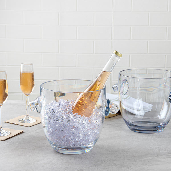 Elevate your beverage service with our Bar Lux 5.3-quart Clear Plastic Ice / Champagne Bucket. This sophisticated ice bucket is made from premium polycarbonate plastic, providing a durable and shatterproof solution for chilling your finest champagnes and other beverages. With its crystal clear glass-like appearance, this plastic champagne bucket offers an elegant presentation while allowing for quick and easy identification of contents. The smooth rim design of this bucket adds a touch of elegance and ensures a comfortable grip while handling. This ice champagne bucket is dishwashable, making clean-up a breeze. Plus, this ice pail stands on a sturdy base, providing stability and preventing spills. With a generous 5.3 quart capacity, this clear plastic ice bucket is spacious enough to hold large amounts of ice or multiple bottles. Measuring 11.75 inches in length by 8.25 inches in width by 8.25 inches in height, this clear plastic ice bucket offers a compact yet efficient solution to your beverage service needs. Sold in a 1 count box.