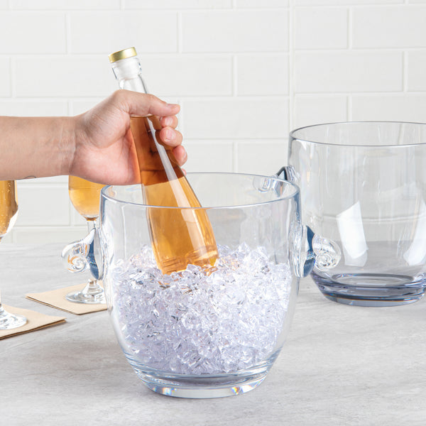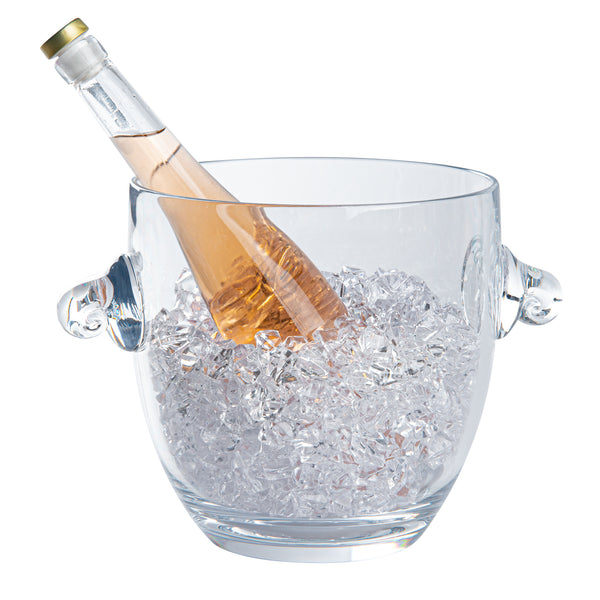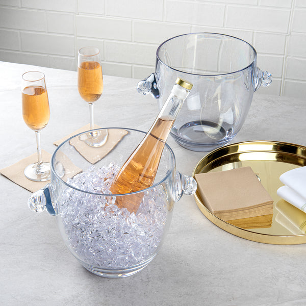 Elevate your beverage service with our Bar Lux 5.3-quart Clear Plastic Ice / Champagne Buckets. These sophisticated ice buckets are made from premium polycarbonate plastic, providing a durable and shatterproof solution for chilling your finest champagnes and other beverages. With their crystal clear glass-like appearance, these plastic champagne buckets offer an elegant presentation while allowing for quick and easy identification of contents. The smooth rim design of these buckets adds a touch of elegance and ensures a comfortable grip while handling. These ice champagne buckets are dishwashable, making clean-up a breeze. Plus, these ice pails stand on a sturdy base, providing stability and preventing spills. With a generous 5.3 quart capacity, these clear plastic ice buckets are spacious enough to hold large amounts of ice or multiple bottles. Measuring 11.75 inches in length by 8.25 inches in width by 8.25 inches in height, these clear plastic ice buckets offer a compact yet efficient solution to your beverage service needs. Sold in a 4 count box.