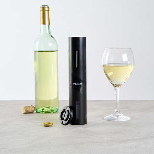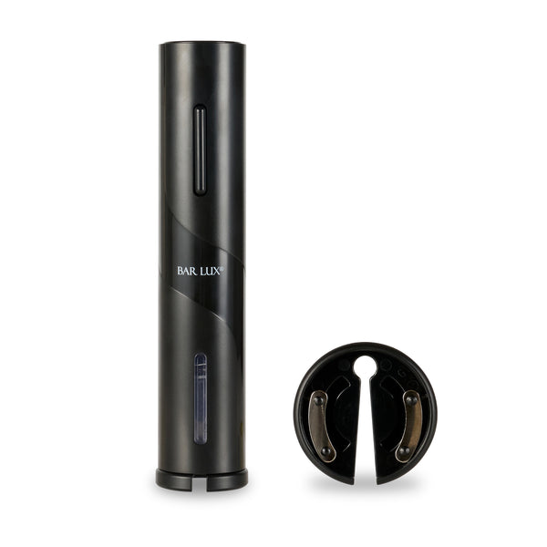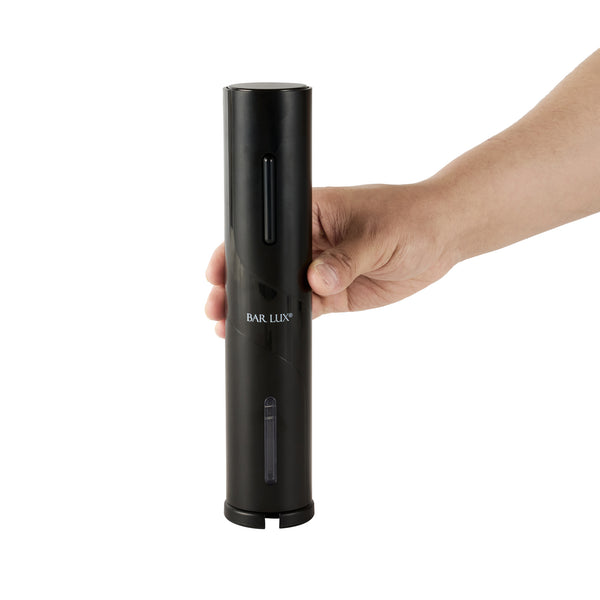 Effortlessly uncork bottles with this sleek and efficient tool. The Bar Lux Battery-Operated Electric Wine Opener combines a modern design with a cordless convenience, ensuring your wine opener is always ready for any occasion. Crafted from durable black plastic, this compact device measures 9.1 inches in height, making it easy to store and handle. With its automatic wine bottle opener feature, the one-touch button extracts corks within 8 seconds, streamlining your service and enhancing customer satisfaction. Additionally, the integrated foil cutter neatly removes foil from wine bottles, eliminating hassle and mess. Ideal for busy restaurants and catering services, this electric wine opener enhances operational efficiency and adds a touch of sophistication to your wine service. Elevate your wine-pouring experience with this indispensable tool. Each order includes 1 Bar Lux Battery-Operated Electric Wine Opener.