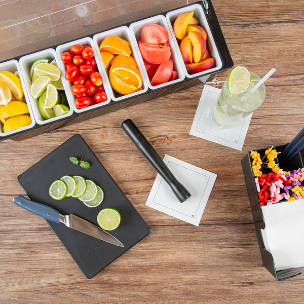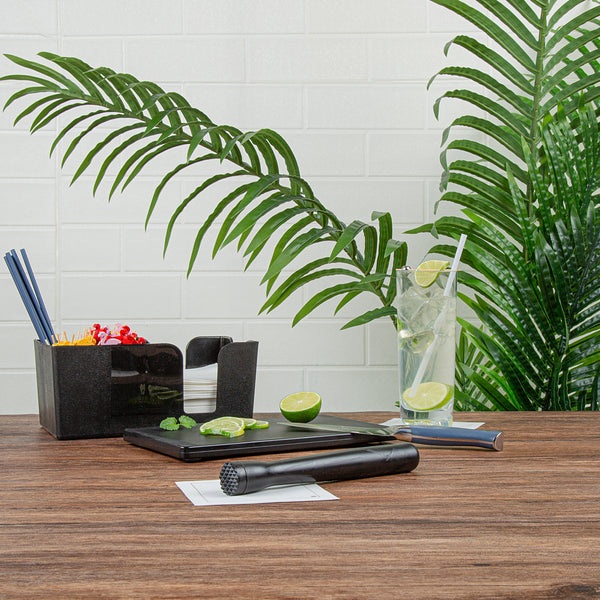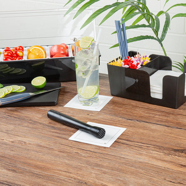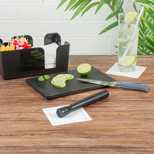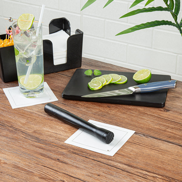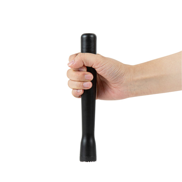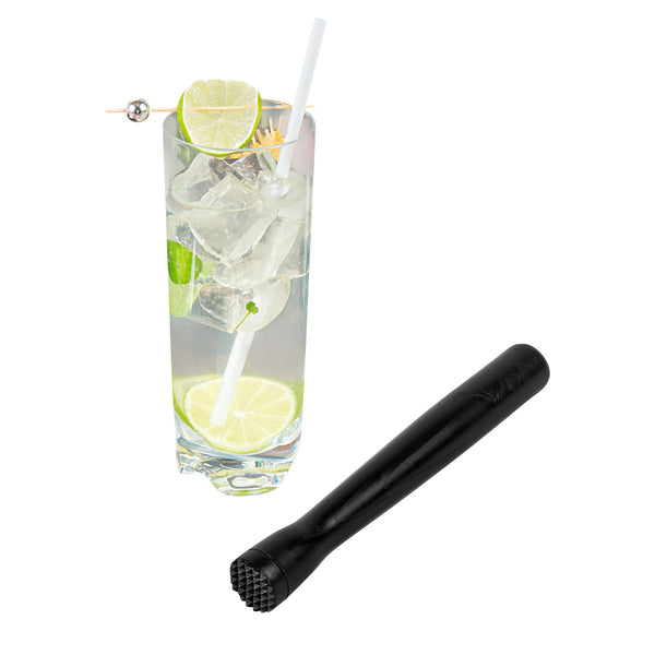 Effortlessly add a burst of flavor to hand-crafted cocktails with our Bar Lux Black Plastic Cocktail Muddler. This mojito muddler is crafted from high-quality plastic for heavy-duty durability, ideal for long-lasting commercial use at any bar service at your restaurant, hotel, or lounge. The tenderizer head of this drink muddler has a sharp, grooved surface that easily crushes fresh fruits and herbs, releasing amazing flavors into any refreshing cocktail. This cocktail muddler has a long grip handle and is great for creating delicious flavor combinations in tall mixing glasses and highball glasses. To maintain its premium appearance, this plastic muddler should be hand washed. This black muddler measures 8.25 inches long by 1 inch wide by 1 inch tall. Shipped in a 1 count box.
