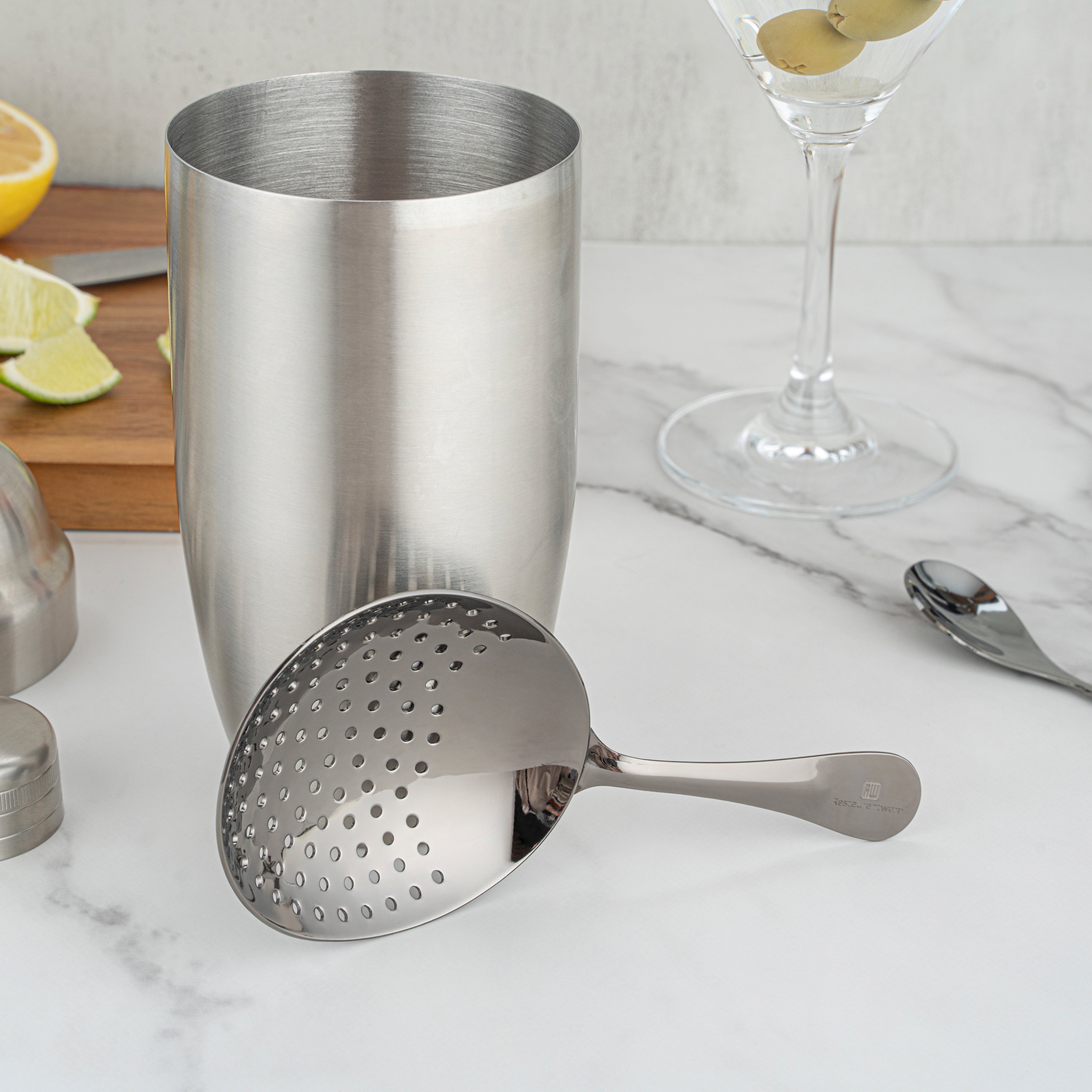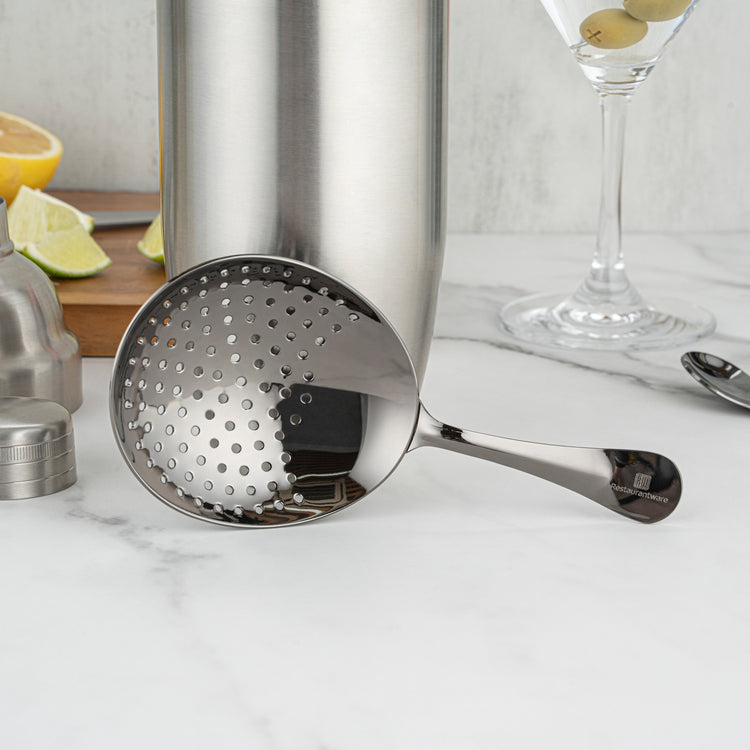- Welded handle rests perfectly on cocktail shakers or mixing glasses