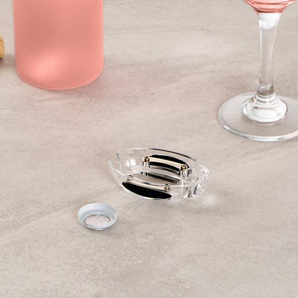 Effortlessly enhance your wine service with precise foil removal. The Bar Lux Wine Foil Cutter combines dual razor-sharp blades with an ergonomic grip, allowing you to effortlessly remove foil from bottles, boosting efficiency in every pour. This wine foil cutter's portable design ensures wine enthusiasts can enjoy their favorite vintages at events, outdoor venues, or intimate gatherings without hassle. Crafted from clear plastic, its protective body safeguards fingers from accidental cuts, ensuring safe operation and reliability in any setting. Unlike typical stainless steel wine gadgets, this foil cutter’s lightweight construction and dimensions of 1.9 inches in length, 0.7 inches in width, and 3.1 inches in height make it easy to carry and store. Elevate your wine service experience today with this essential bottle foil remover. Each order includes 1 Bar Lux Wine Foil Cutter.