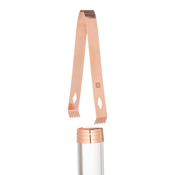 These premium copper-plated ice tongs are designed to easily and firmly serve ice spheres and ice cubes for impressive drinks and cocktails on the rocks. Constructed from stainless steel, these bar tongs are strong, durable, and easy to rinse and wipe clean. They can also be used to serve fruit, bread, and appetizers, or to pick up garnishes and other food items hands-free. These ice tongs' sleek copper-plated finish brings added sophistication to your restaurant, hotel, or catering company's barware. Each Bar Lux Copper-Plated Ice Tongs measure 6.3 inches in length and are shipped 1 per order.