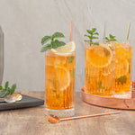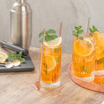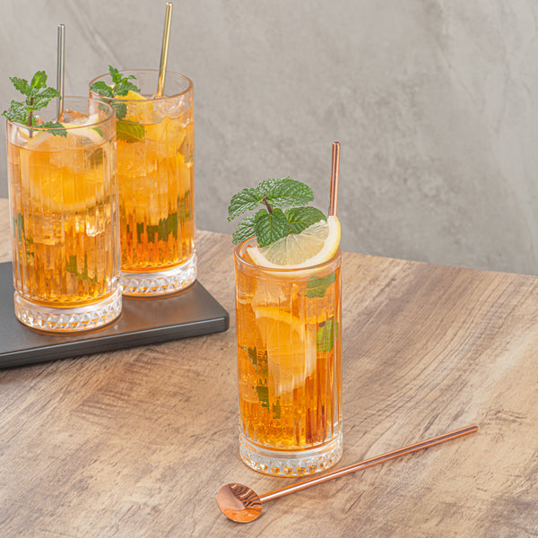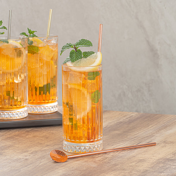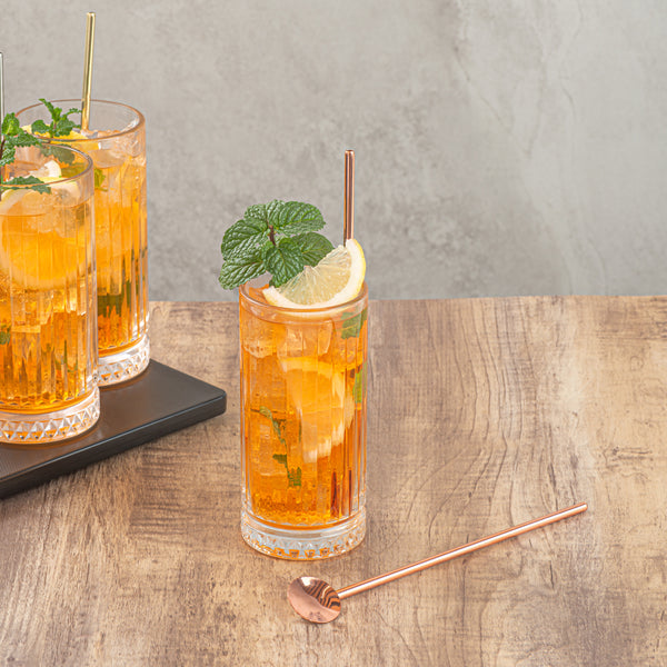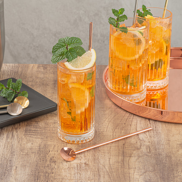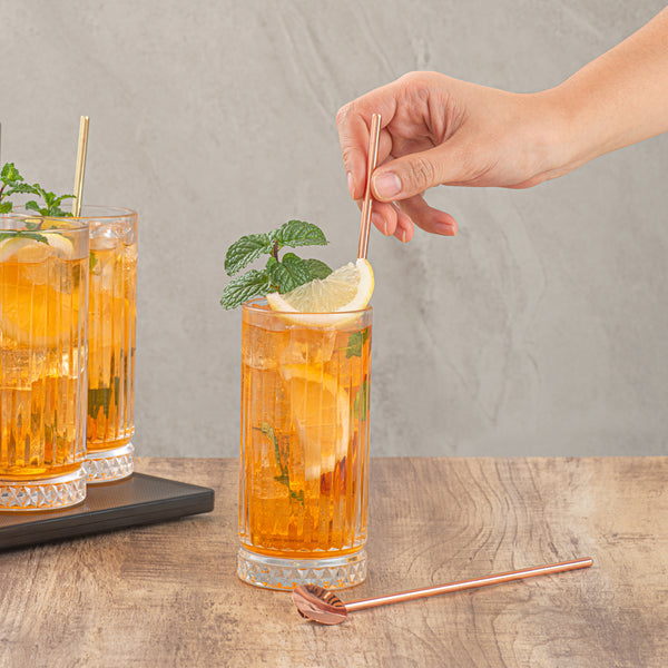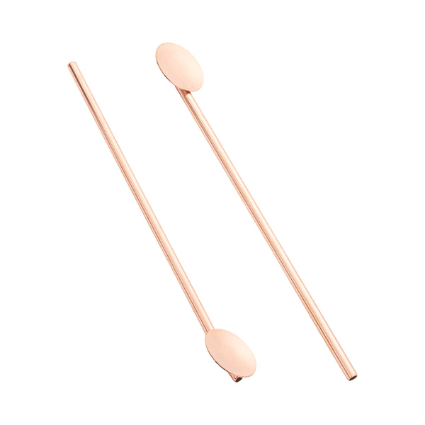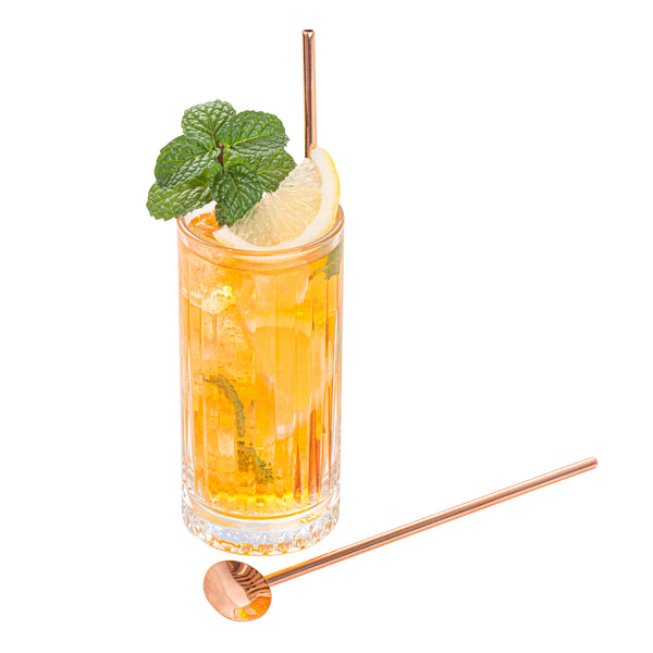 Indulge in the art of stirring and sipping simultaneously with our Bar Lux Copper-Plated Stainless Steel Julep Spoon Straws. Crafted for durability, these copper-plated stainless steel straw spoons bring a touch of sophistication to your array of refreshing beverages. The innovative design of these stirrers seamlessly merges the functionality of a spoon with the convenience of a straw, ensuring optimal usability. With a copper-plated design, these reusable straws not only contribute to waste reduction but also elevate the aesthetic of your bar, restaurant, or catering service. Perfect for concocting strawberry daiquiris at a poolside bar or adding a touch of elegance to iced vanilla lattes at a chic cafe, these versatile sipping spoons redefine style and practicality in beverage presentation. These copper-plated straws measure 7.5 inches in length. Sold in a 2 count box.