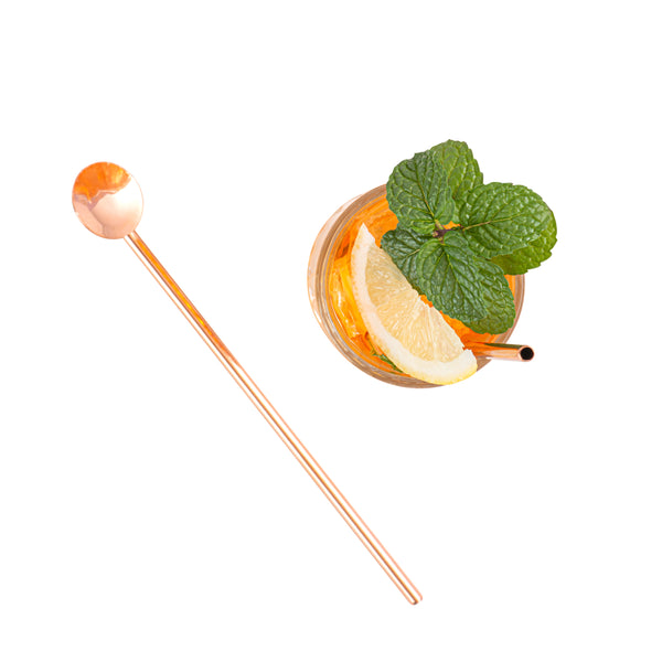 COPPER-PLATED STAINLESS STEEL JULEP SPOON STRAW