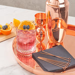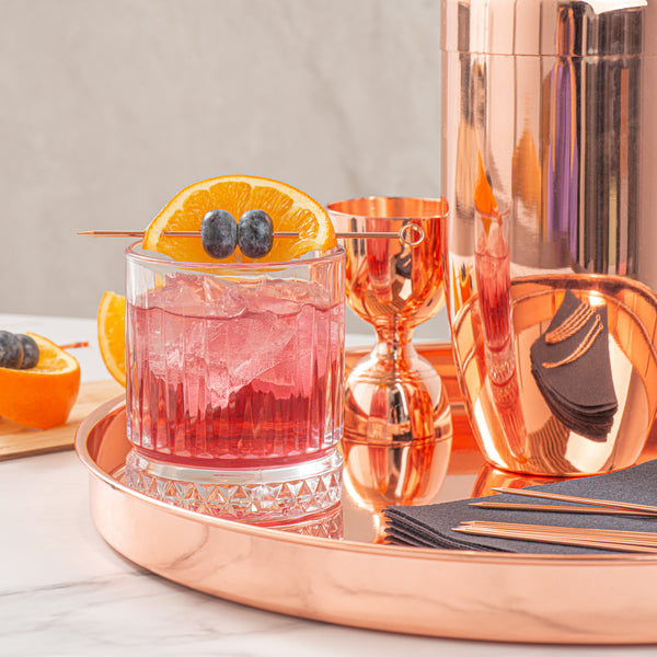 - Copper-plated finish adds a modern touch to drink or food presentations