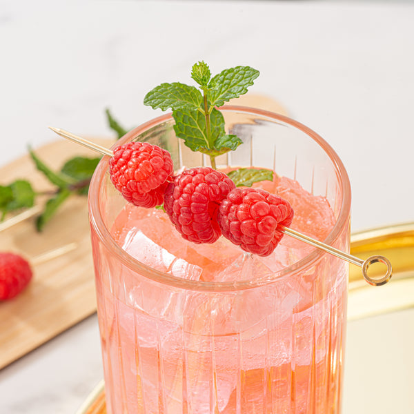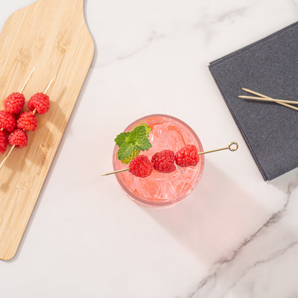 Hand out elegant samples with our Bar Lux Gold Plated Stainless Steel Cocktail Picks. Equipped with a circular handle, these drink skewers provide comfortable handling while customers stir their drinks. With a gold-plated finish, these stainless steel skewers complement your beverage presentations. The sharp end of these garnish picks effortlessly pierces through olives and cherries to top off your cocktails. Made from stainless steel, these metal cocktail picks are corrosion-resistant for everyday use at your bar, club, or restaurant. To preserve the stunning gold-plated finish, we recommend hand washing only. These gold cocktail picks measure 4.5 inches in length. Sold in a 10 count box.