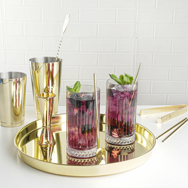 Elevate your stirring and sipping experience with our Bar Lux Gold-Plated Stainless Steel Julep Spoon Straws. These durable, gold-plated stainless steel straw spoons add a touch of sophistication to your collection of refreshing beverages. The ingenious design of these stainless steel spoon straws seamlessly combines the functionality of a spoon with the convenience of a straw, ensuring optimal usability. Not only do these reusable straws contribute to waste reduction, but their gold-plated aesthetic also enhances the overall look of your bar, restaurant, or catering service. Ideal for crafting strawberry daiquiris by the poolside bar or adding a touch of elegance to iced vanilla lattes in a chic cafe, these versatile sipping spoons redefine both style and practicality in beverage presentation. Each spoon straw measures 7.5 inches in length. Sold in a 2 count box.