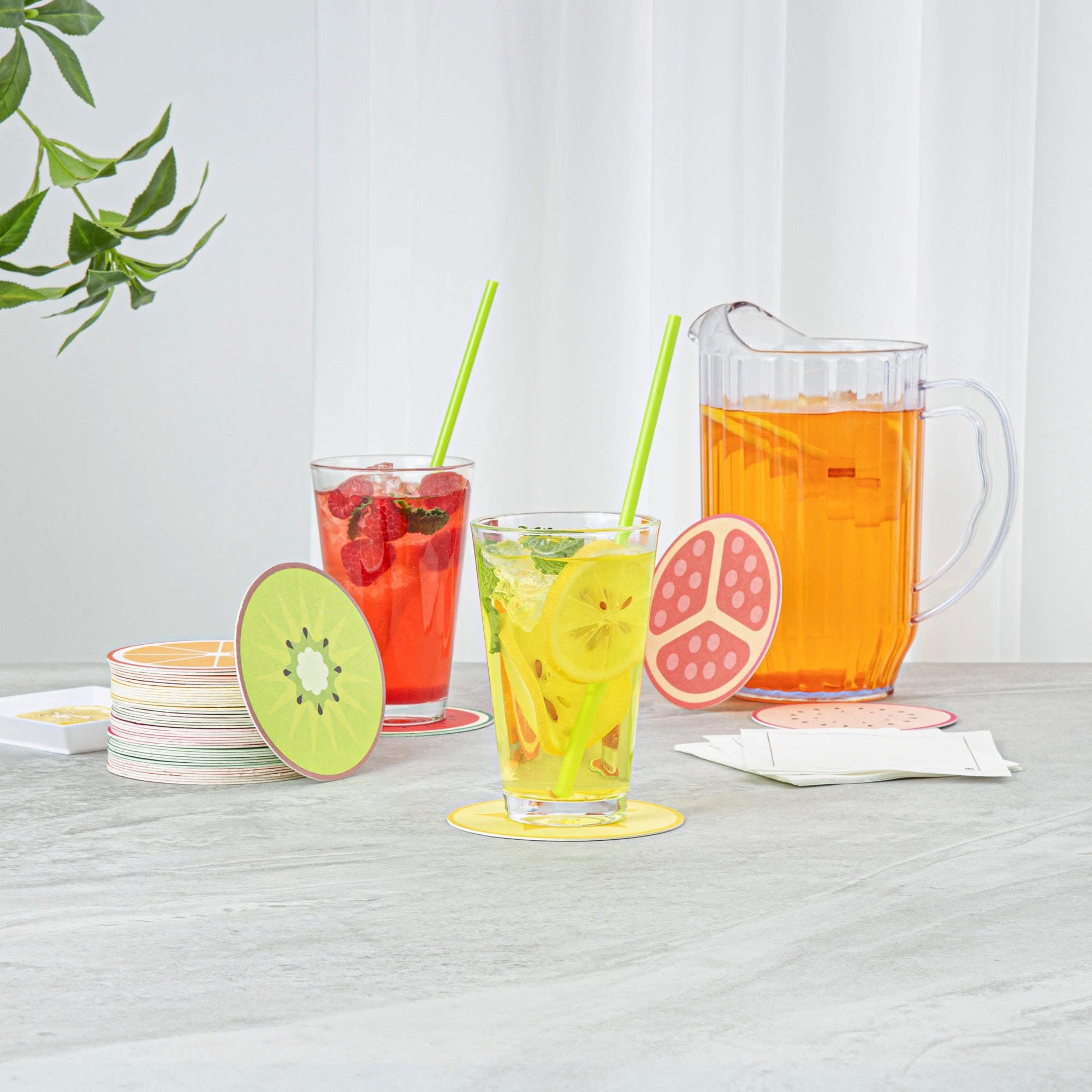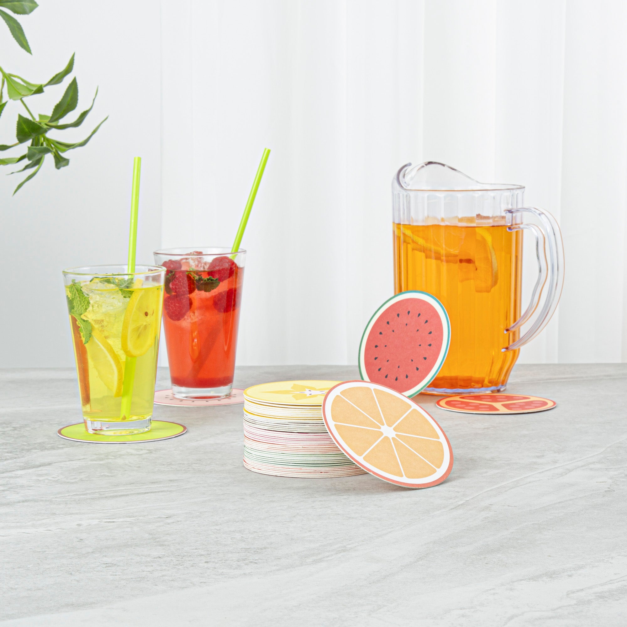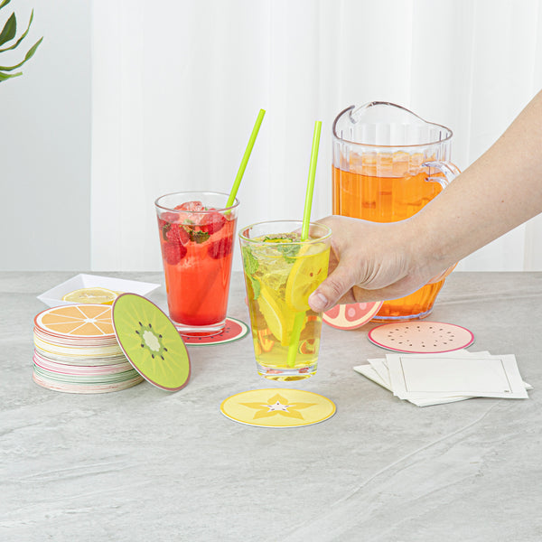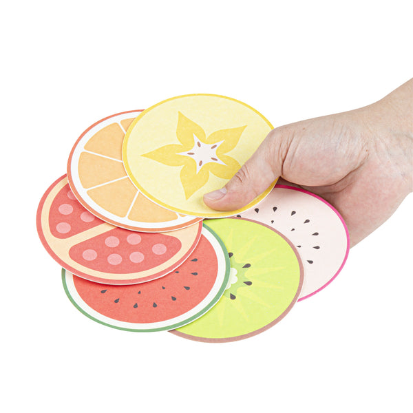 ROUND FRUIT PAPER COASTER - 6 ASSORTED DESIGNS - 4"