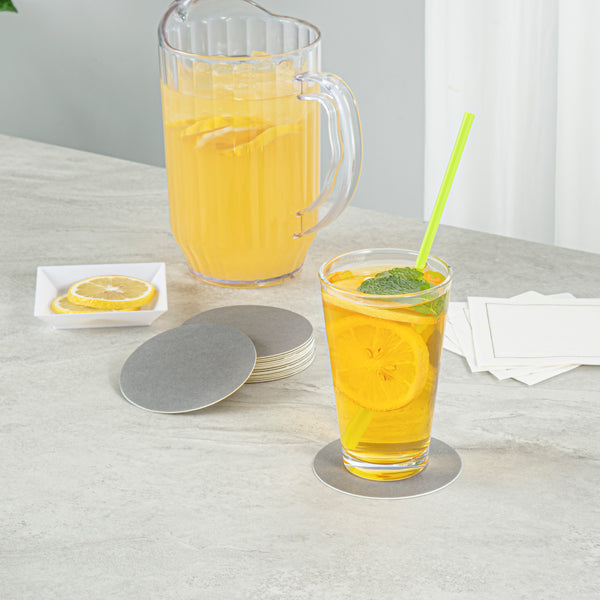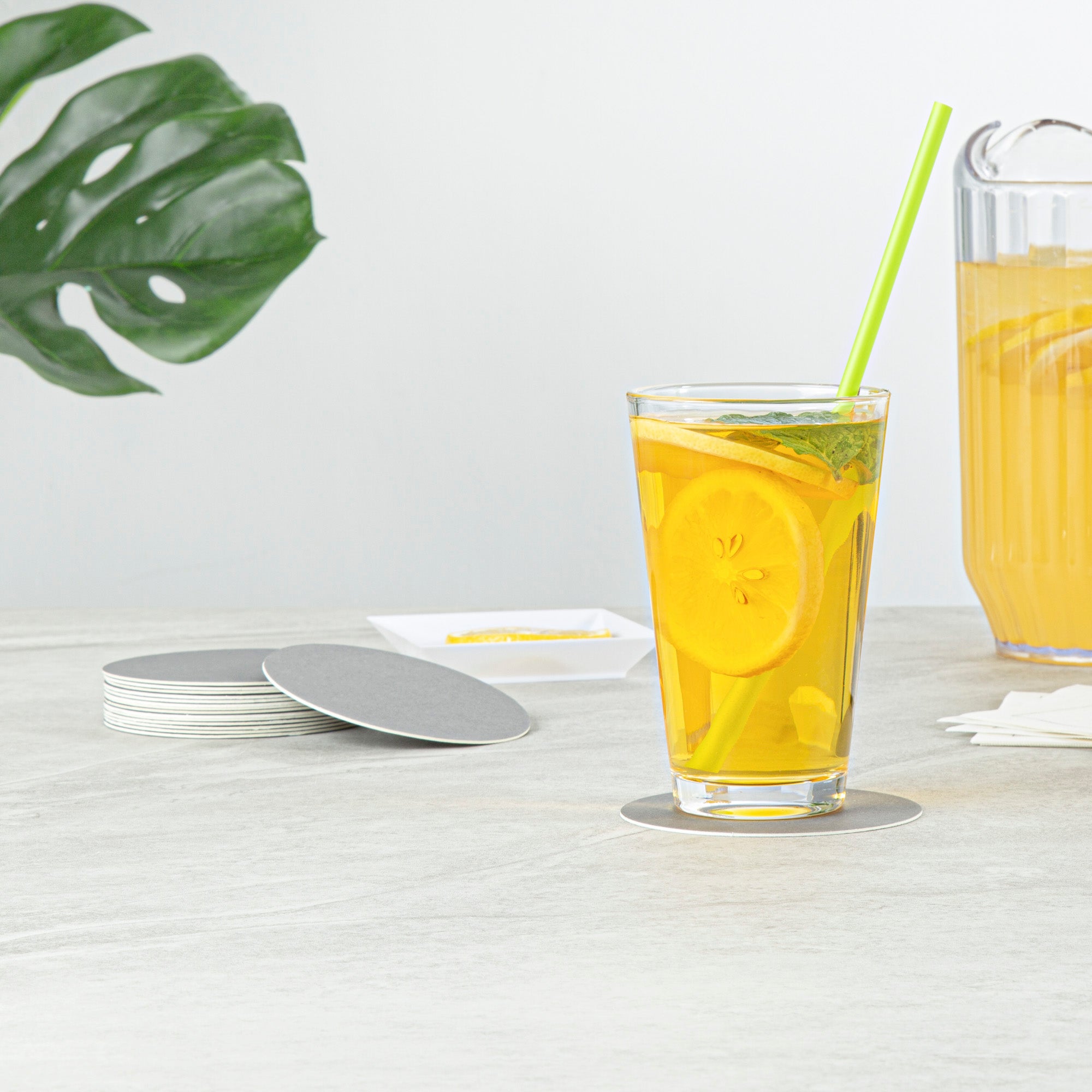 Enhance your beverage presentation with versatile absorbent coasters. Bar Lux Super Absorbent Gray Paper Coasters feature a 3.5-inch diameter, providing a durable and absorbent surface that protects tables from condensation and spills. Constructed from high-density water-absorbent board, these drink coasters dry quickly for reuse, making them ideal for high-volume settings. Their tear-resistant design withstands both hot and cold beverages, ensuring reliability for various drink offerings. With a sophisticated gray hue, these disposable coasters complement any décor while facilitating easy cleanup and supporting eco-friendly practices. Full-color printing options allow for personalized branding, boosting customer engagement and enhancing the dining experience. Perfect for bars, restaurants, and catering events, these paper coasters streamline operations and elevate table settings. Each order includes 1000 Bar Lux Super Absorbent Gray Paper Coasters.