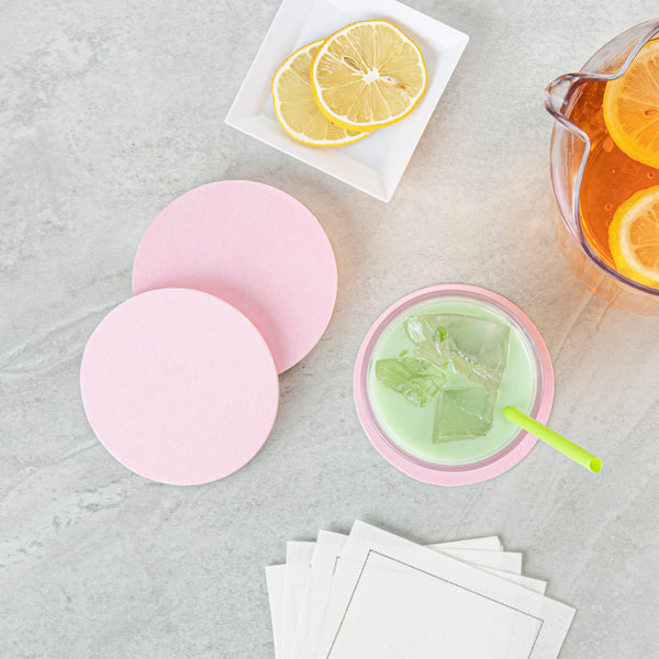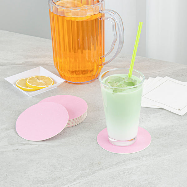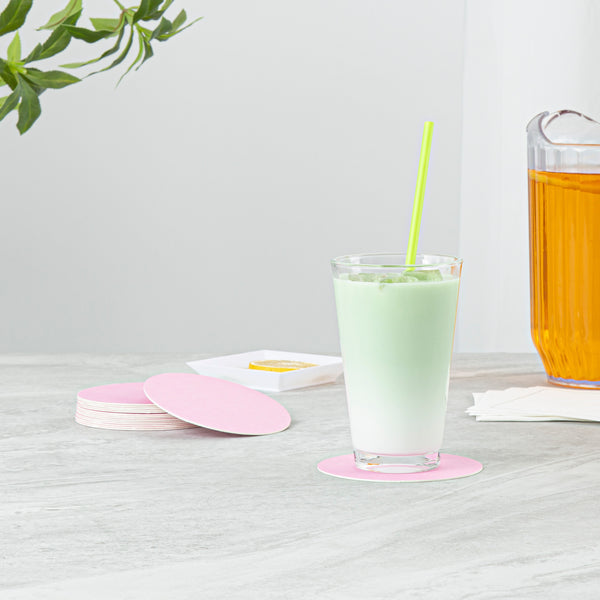 Enhance beverage service with versatile, absorbent drink coasters. Bar Lux High-Density Absorbency Drink Coaster features a 4-inch round design that accommodates various glass sizes, offering flexibility for all types of drinkware. Made from a high-density absorbent board, this paper coaster speeds up condensation cleanup and minimizes mess, making it an ideal table protector during busy shifts. Its reusable design helps reduce waste and replacement costs, while the ability to print in full color supports custom branding to elevate your establishment’s identity. The vibrant pink color adds a lively touch to any setting, enhancing the aesthetic appeal of your beverage presentations. Whether shielding surfaces at bustling bars or adding flair to catered events, these coasters provide a practical and stylish solution. Ensure your tables and counters stay protected with these indispensable coasters. Each order includes 1000 Bar Lux High-Density Absorbency Drink Coaster.