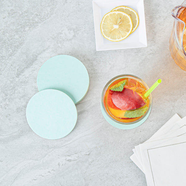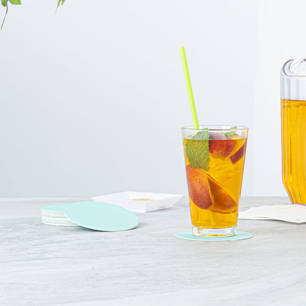 Safeguard surfaces with style using our Bar Lux Absorbent Drink Coasters. These 3.5-inch round absorbent coasters are crafted from premium paper stock, offering a reliable barrier against spills and condensation to protect your tables effortlessly. With their high-density board, these coasters absorb moisture faster than ordinary options, significantly reducing messes in busy foodservice environments. The super absorbent design not only ensures functionality but also allows for a thinner, more elegant appearance, perfect for enhancing any table setting. Plus, their vibrant turquoise color adds a lively pop, elevating the overall dining ambiance. Made from disposable coasters material, they simplify cleanup processes while supporting eco-friendly initiatives, making them ideal for high-volume establishments. Reuse them after air-drying to lower operational costs and bolster sustainability efforts. Elevate your drink presentation and efficiency with these versatile drink coasters. Each order includes 1000 Bar Lux Absorbent Drink Coasters.