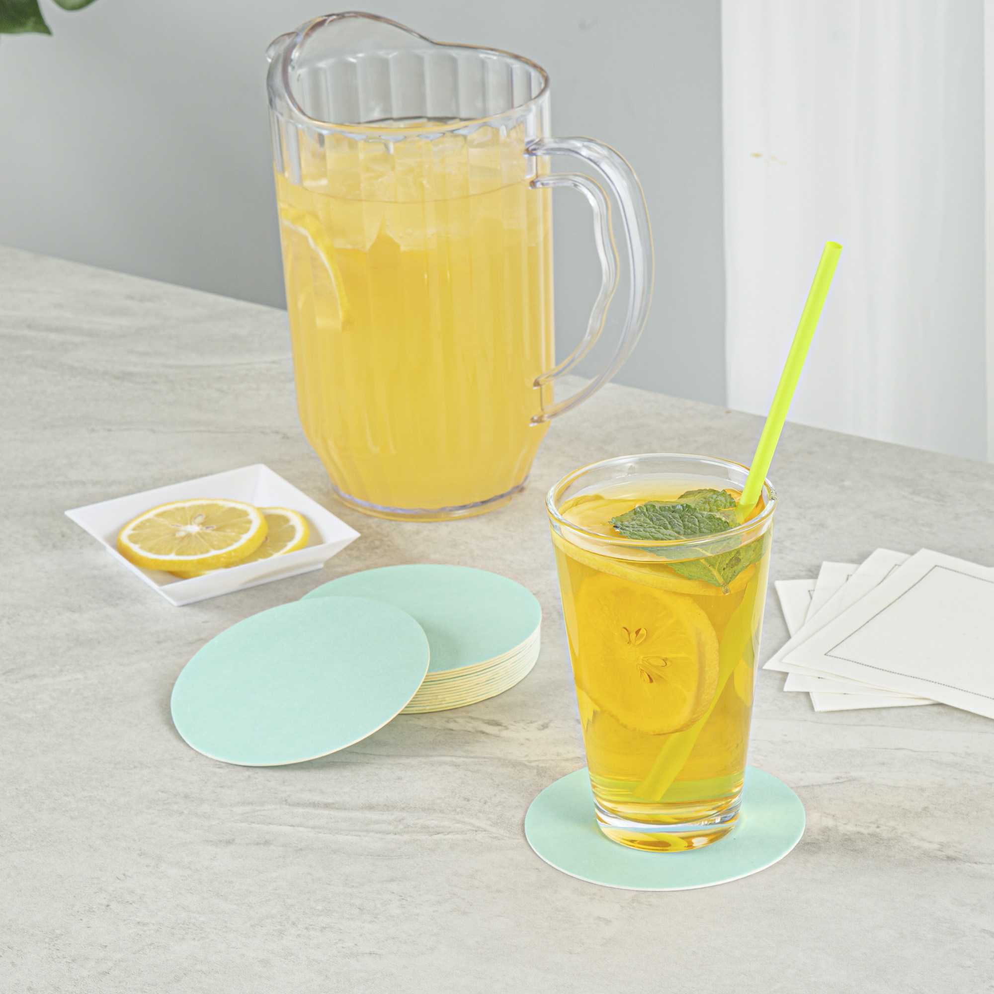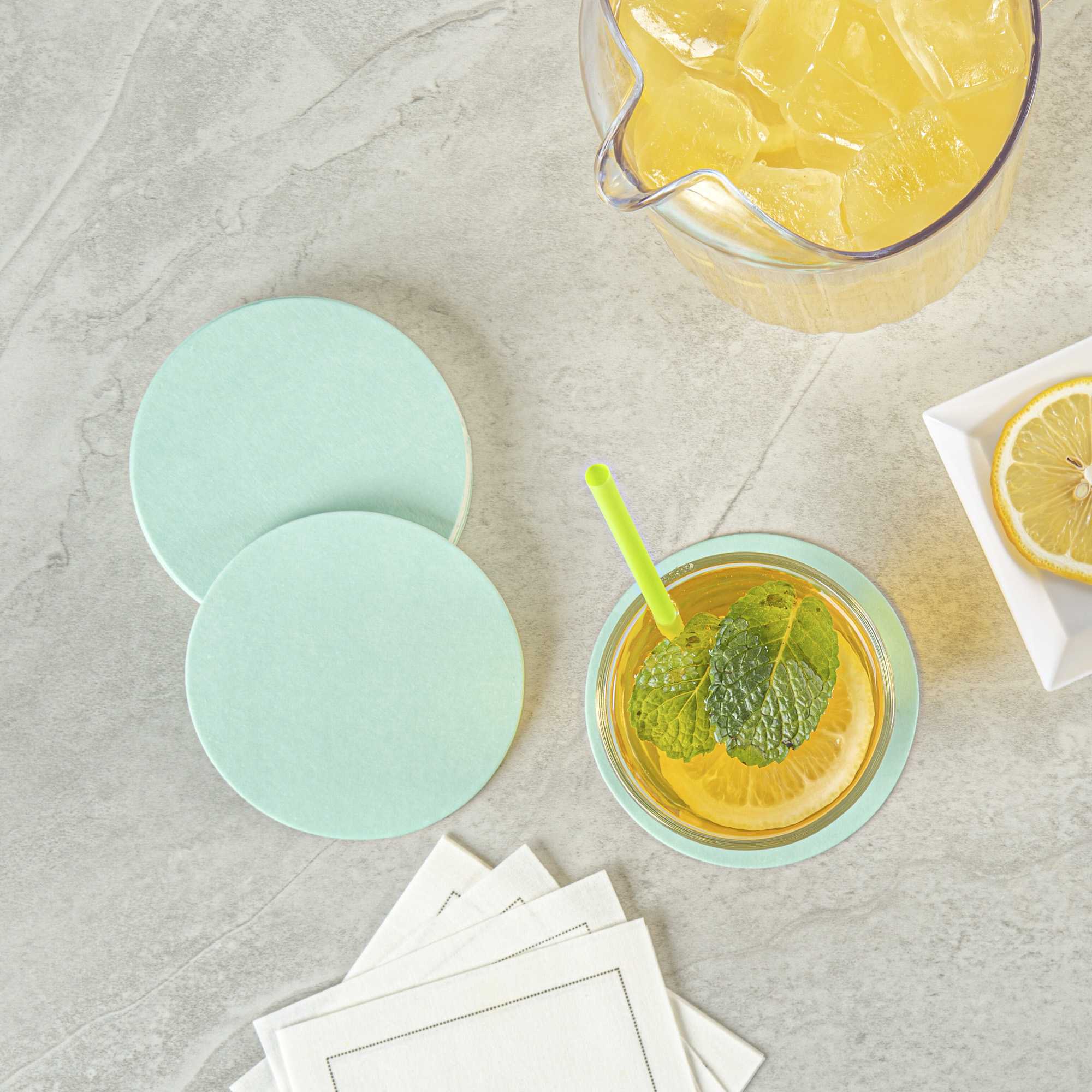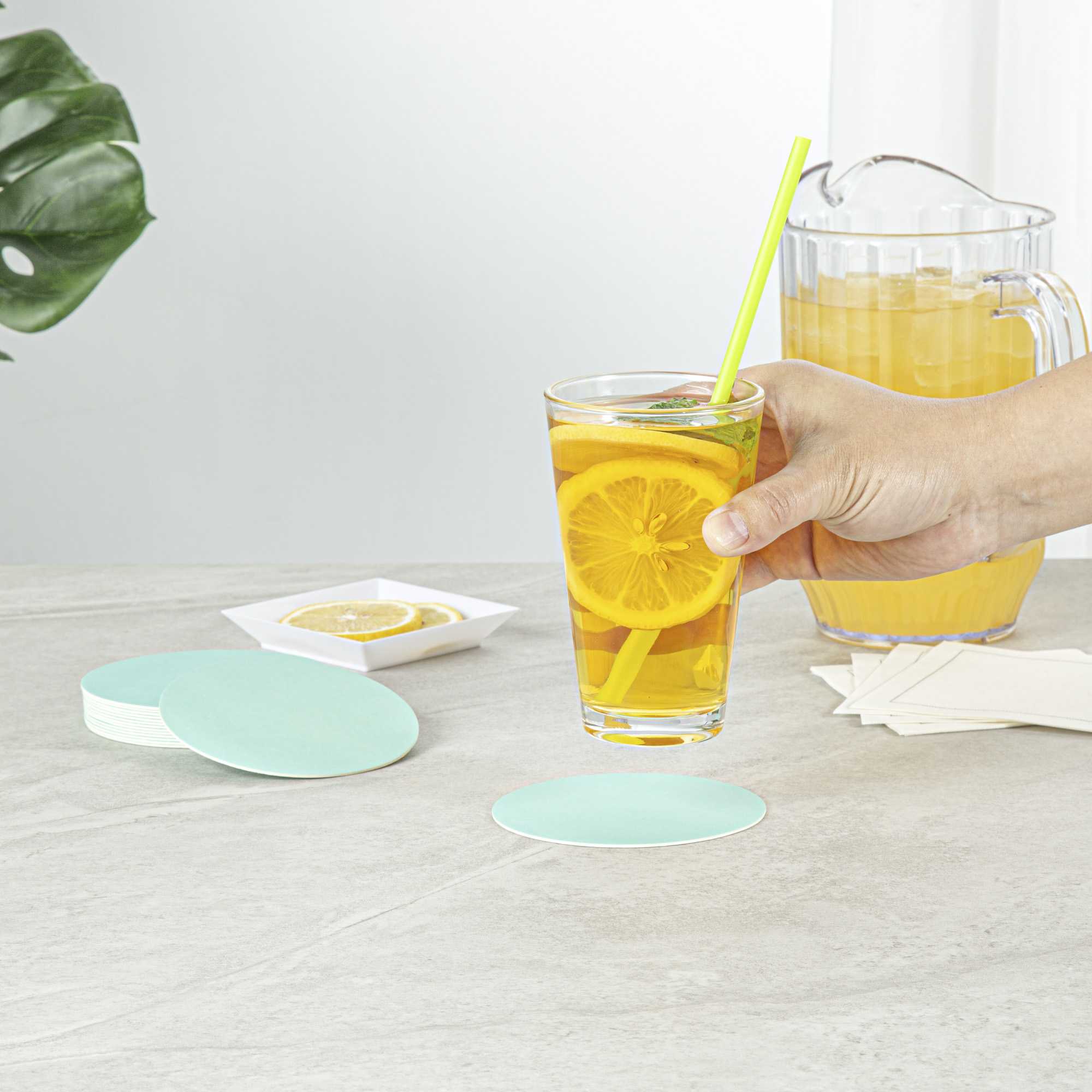 Enhance your tabletop presentation with vibrant drink coasters. The Bar Lux Absorbent Drink Coaster combines a high-density absorbent board with a reusable design, providing a solution that minimizes thickness while protecting surfaces from condensation. The absorbent coaster quickly soaks up moisture, making it ideal for both hot and cold beverages. With full-color printing capabilities, this customizable coaster allows you to elevate your brand's image and harmonize with your decor. Its lightweight, 4-inch round design accommodates various glassware sizes, ensuring versatility in any setting. Made from high-quality paper, these coasters are tear-resistant and disposable, simplifying cleanup and inventory management. Whether you're a bar or cafe, these coasters offer a decorative touch that complements any interior design. Embrace sustainability and cost-effectiveness with coasters that can be reused after a quick air drying. Each order includes 100 Bar Lux Absorbent Drink Coaster.