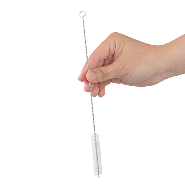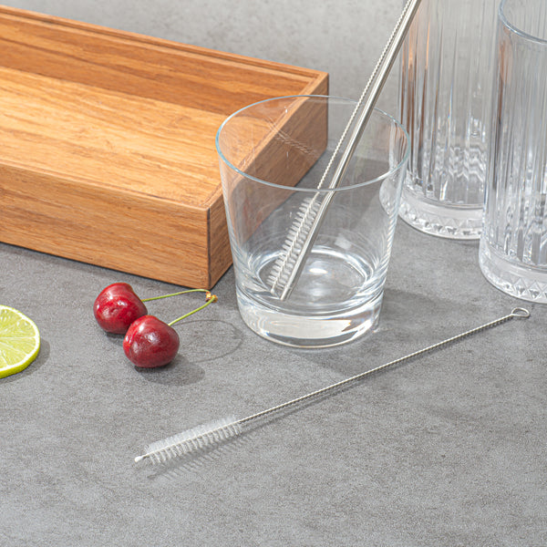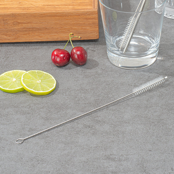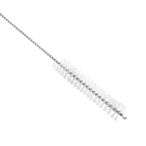 Ensure your reusable straws are clean and sanitary with this Bar Lux Reusable Stainless Steel Straw Cleaning Brush. Equipped with durable nylon bristles, this cleaning brush for reusable straws is able to effortlessly reach all of the hard-to-clean places in your glass, silicone, or stainless steel straws! The high-quality stainless steel handle enables reliable and easy-to-control use, while the firm nylon bristles easily collect and remove debris from your straws. Featuring a total diameter of 0.4 inches, the nylon bristles on this straw cleaning brush are a perfect fit for most reusable drinking straws. Each of these brushes measures 9.5 inches in total length and can be used to clean reusable straws of all sizes. Browse Restaurantware's selection of stainless steel straws to complete your purchase! Sold in a 2 count box.