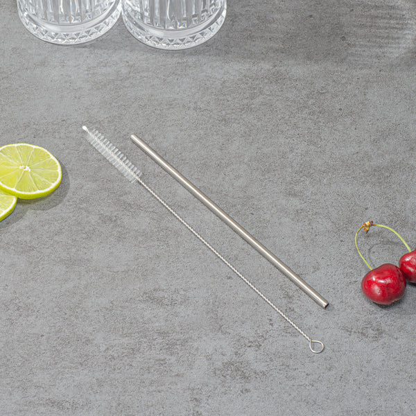 SILVER STAINLESS STEEL STRAW CLEANING BRUSH - REUSABLE