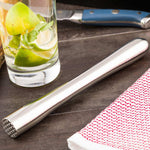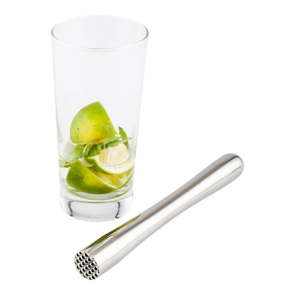 Easily mash ingredients for hand-crafted cocktails with our Bar Lux Stainless Steel Muddler. This sleek 8-inch stainless steel muddler is the perfect bar tool for making flavorful cocktails quickly and easily. Constructed from premium stainless steel, this cocktail muddler is designed with an easy-to-grip handle, ensuring a comfortable and secure smashing of lime wheels, pineapple wedges, and lemon slices. The streamlined design makes this bar muddler easy to rinse, wash, and reuse, and the stainless steel construction ensures it's dishwasher-safe. With a heavy-duty design, this bar tool is easy to grip and use. Measuring 3 inches in diameter by 8 inches in height, this cocktail muddler is the perfect size for making cocktails of all sizes. Sold in a 1 count box.