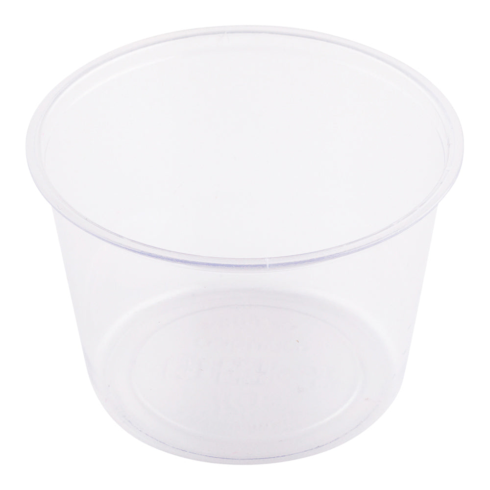 Choose sustainability with your takeaway or delivery service using our Basic Nature 4-Ounce Clear PLA Plastic Portion Cups. These portion cups are composed of PLA, plastic made from cornstarch, thus offering a sustainable option for portioning your condiments. Plus, these 4-ounce plastic cups are the perfect asset to offer small servings of condiments like mustard, mayonnaise, salad dressing, etc. Each of these commercially compostable sauce cups can accommodate up to 4 ounces of your signature dips or dressings. These portion cups are designed to handle cold foods only. Measuring 2.8 inches in diameter by 2 inches in height, these clear plastic cups hold up to 4 ounces. Sold in a 100 count box. Lids are available and sold separately. NOTE: Store and use under 105F. Avoid prolonged exposure to direct sunlight. Suitable for cold food items only.