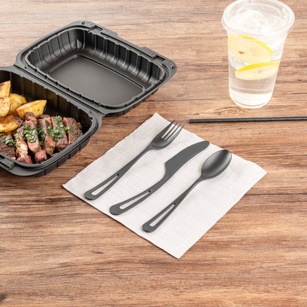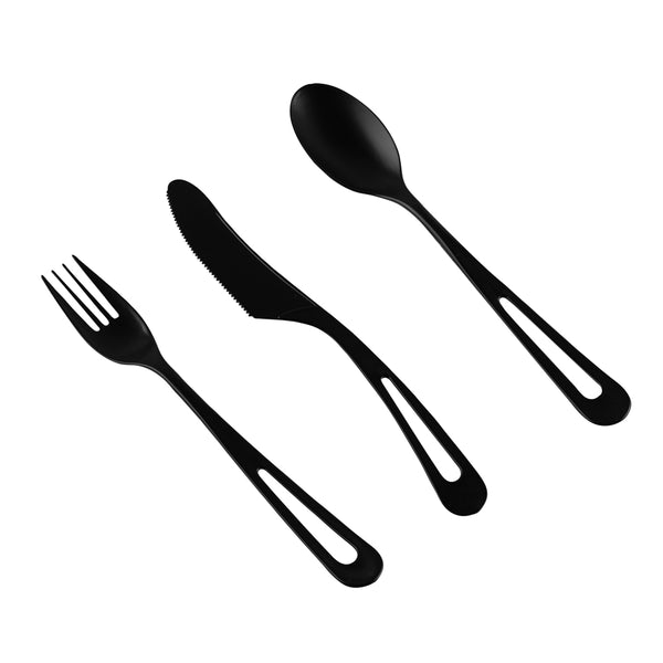 BLACK CPLA PLASTIC CUTLERY SET - HEAT-RESISTANT, COMPOSTABLE