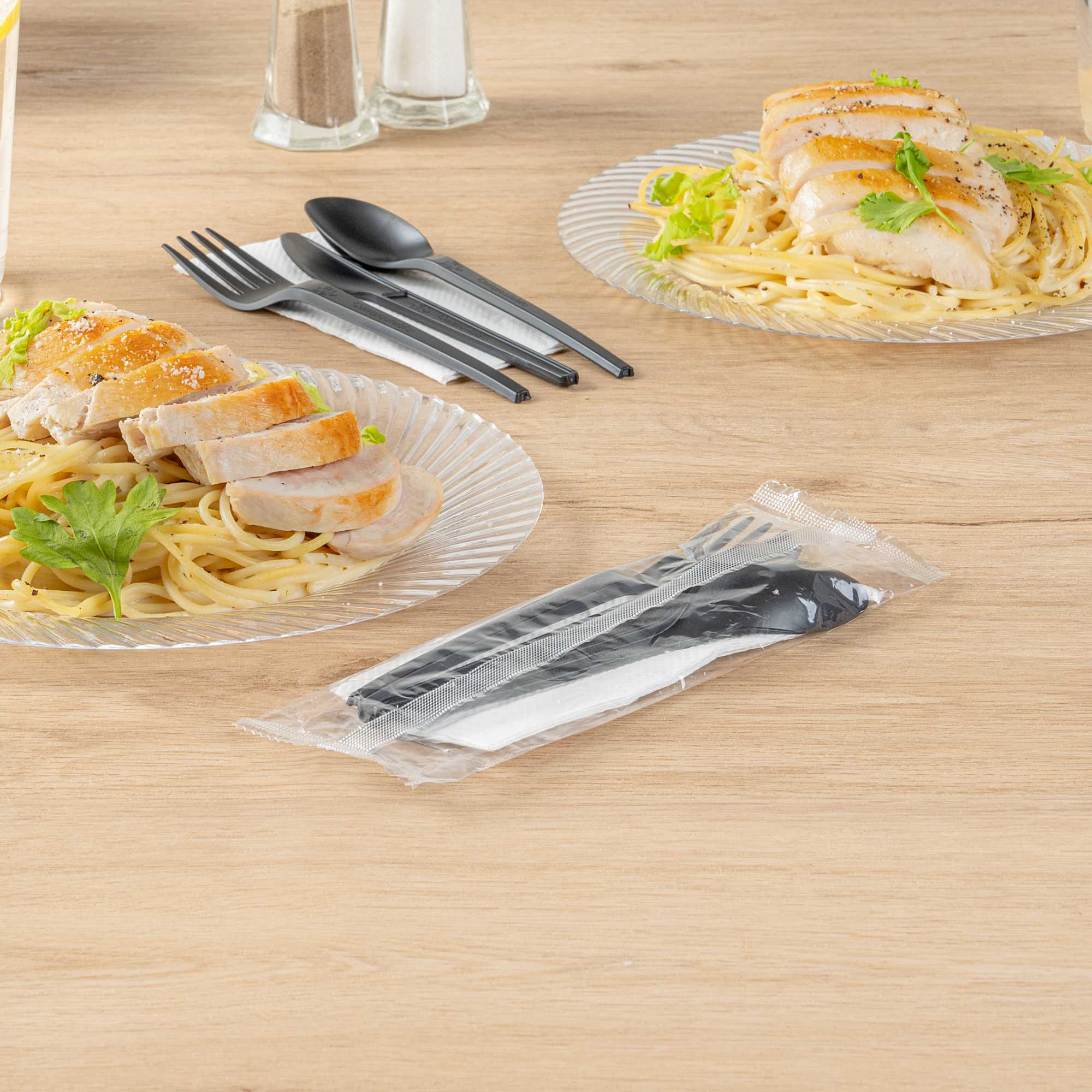Choose from our individual forks, spoons, knives, or cutlery kits with napkins to easily set tables and clean up after meals. With our wrapped sets, every guest will have sanitary untensils.