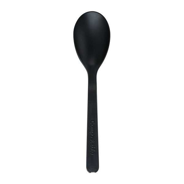 BLACK CPLA PLASTIC MINI SPOON - HEAT-RESISTANT, COMPOSTABLE