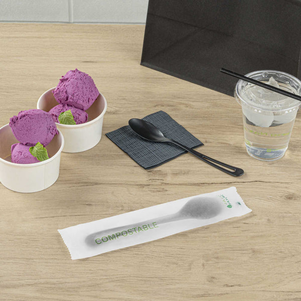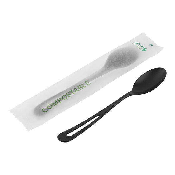 BLACK CPLA PLASTIC SPOON - COMPOSTABLE WRAPPER, HEAT-RESISTANT