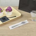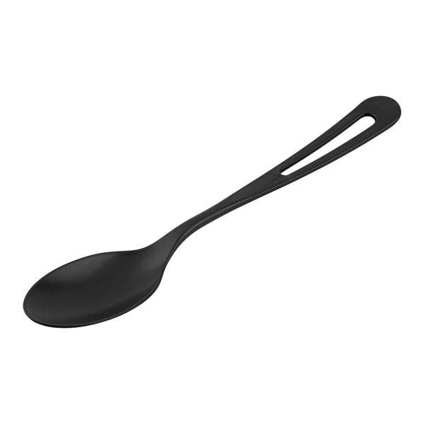 Scoop with confidence using our eco-friendly utensils. The Basic Nature Compostable Spoon combines a reinforced handle with a sleek black finish to expertly handle hefty bites without breaking, making it the ideal black disposable spoon for restaurants and cafes. Crafted from premium CPLA plastic, this spoon is heat-resistant up to 180 degrees Fahrenheit, allowing for the enjoyment of hot dishes while maintaining its integrity—perfect for any heat-resistant disposable spoon requirements. Enclosed in a commercially compostable wrapper, it protects cutlery and minimizes your carbon footprint, aligning with sustainable dining practices. With an overall length of 7.2 inches, this spoon is not only sturdy but also aesthetically pleasing, suitable for any catering event or buffet. Optimize your takeaway service with this compostable spoon, ensuring hygiene and environmental consciousness. Each order includes 250 Basic Nature Compostable Spoons.