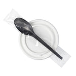 BLACK CPLA PLASTIC SPOON - WRAPPED, HEAT-RESISTANT, COMPOSTABLE