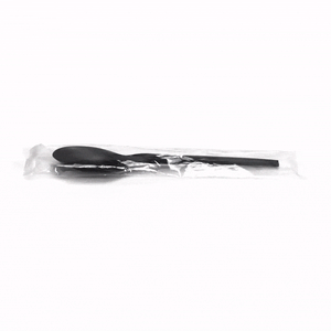 BLACK CPLA PLASTIC SPOON - WRAPPED, HEAT-RESISTANT, COMPOSTABLE