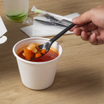 Made from PLA, a cornstarch-based bioplastic, these utensils are compostable with BPI certitifcation. Designed with an embossed "Compostable" message to remind guests of the correct way to dispose of these utensils.