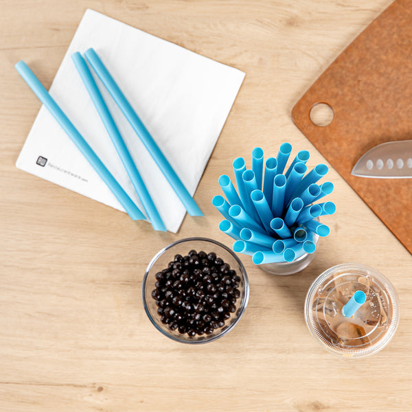 BLUE PLA PLASTIC EXTRA WIDE BOBA STRAW - UNWRAPPED, COMPOSTABLE