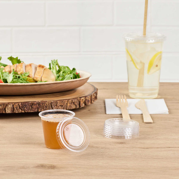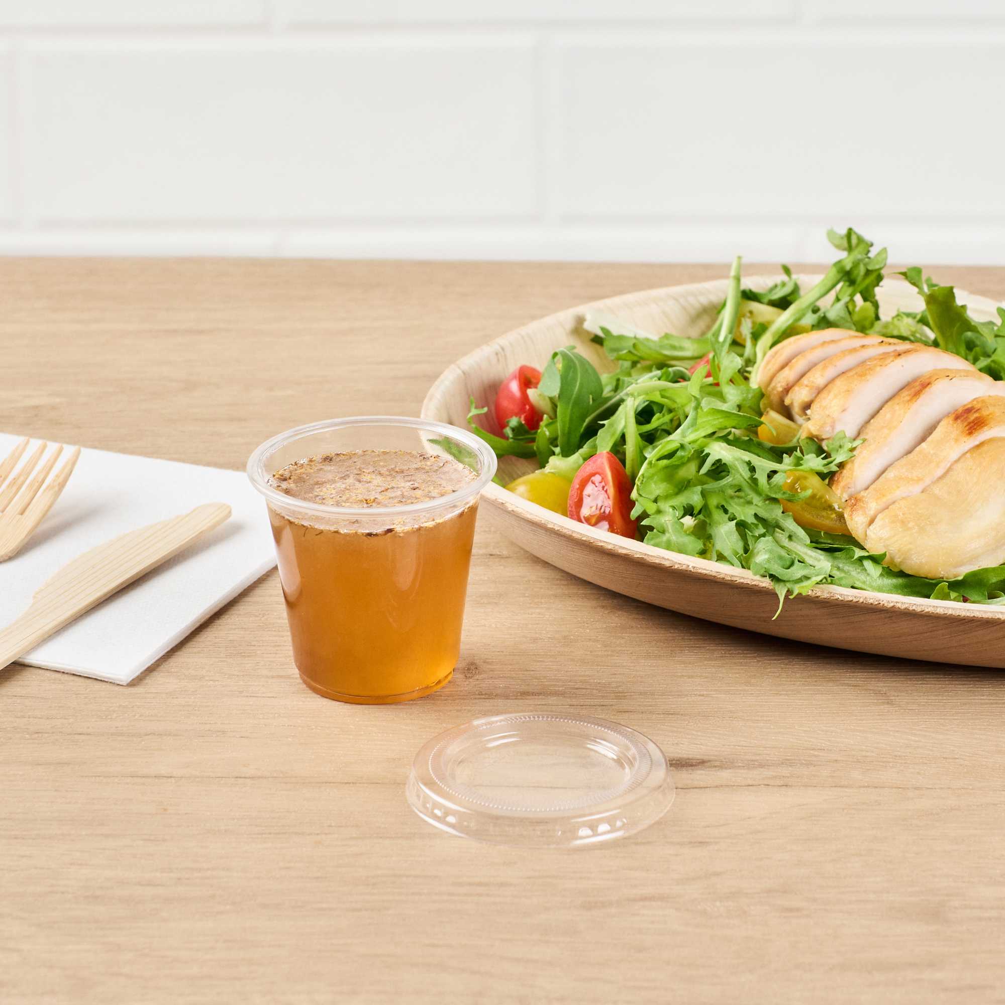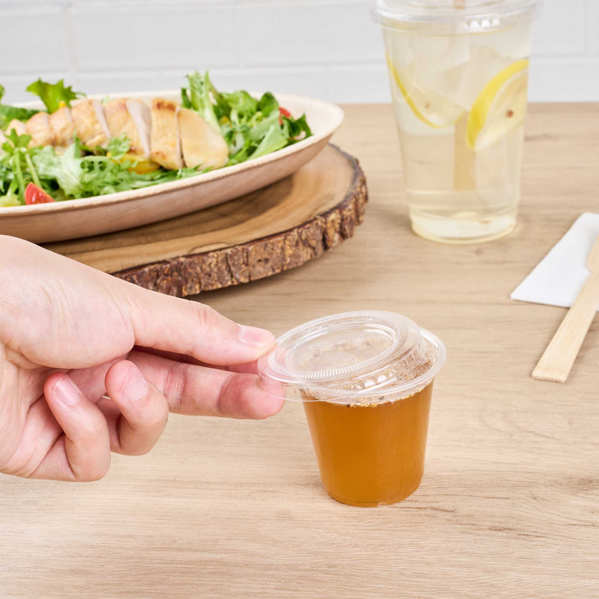 CLEAR PLA PLASTIC LID - FITS 2 / 3 OZ PORTION CUP, COMPOSTABLE