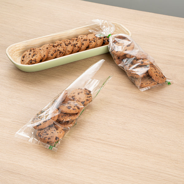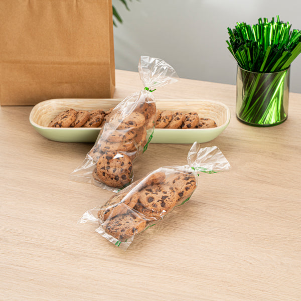 Enhance operational efficiency with hassle-free snack storage solutions. The Basic Nature Heat-Sealable Clear Plastic Bag offers a no flap closure that speeds up packaging while maintaining freshness with its heat-sealable design. Made from home compostable cellulose, these clear plastic bags align with eco-friendly initiatives, supporting sustainable disposal practices that are ideal for conscientious businesses. The clear finish of these cellophane bags showcases the vibrant colors of your treats, making them perfect for attracting customers with appealing product presentation. With dimensions of 10.04 inches in length and 3.78 inches in width, these bags are freezer-safe, preserving the freshness of frozen goods and keeping them secure during storage and transport. Tear notches provide easy access for customers, while the greaseproof construction ensures contents remain intact without unsightly stains. Each order includes 100 Basic Nature Heat-Sealable Clear Plastic Bags.
